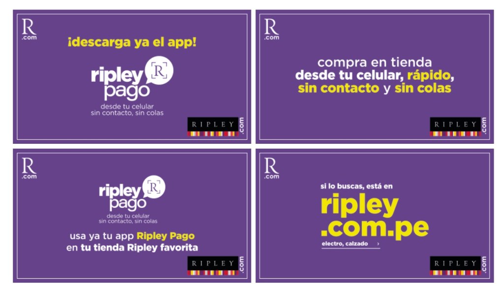 Además del lanzamiento de la aplicación ‘Ripley Pago’, la tienda por departamento ofrece a sus clientes otras alternativas innovadoras para agilizar el proceso y la experiencia de compra de sus clientes. Tal es el caso Ripley Express, el carrito que recorre la tienda con un colaborador donde los clientes pueden hacer sus compras sin necesidad de acercarse a las cajas. El módulo de autoatención, que consiste en unos módulos donde el cliente puede comprar solo, sin necesidad de hacer cola y sin contacto. Todos estos servicios han sido creados para que los clientes puedan vivir una experiencia de compra segura y rápida en las tiendas. Finalmente, podrán hacer sus compras desde la comodidad de su hogar en Ripley.com.pe y recibir los pedidos en casa, en las tiendas de Ripley o la tienda Tambo más cercana de forma gratuita.
