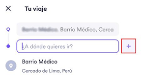 - Antes de darle clic al destino final, pulse el ícono de “+”. Así podrá añadir paradas a medio camino, en el orden en el que desee realizarlas.