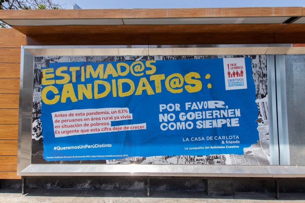 La Casa de Carlota & Friends, la agencia innovadora en materia publicitaria, realizará por primera vez en el Perú, una campaña con motivo de las próximas Elecciones Generales que tendrán lugar el 11 de abril. Cabe destacar que esta agencia trabaja con un equipo que incluye artistas con síndrome de down y autismo, expertos en creatividad, marketing, estrategia y sostenibilidad.