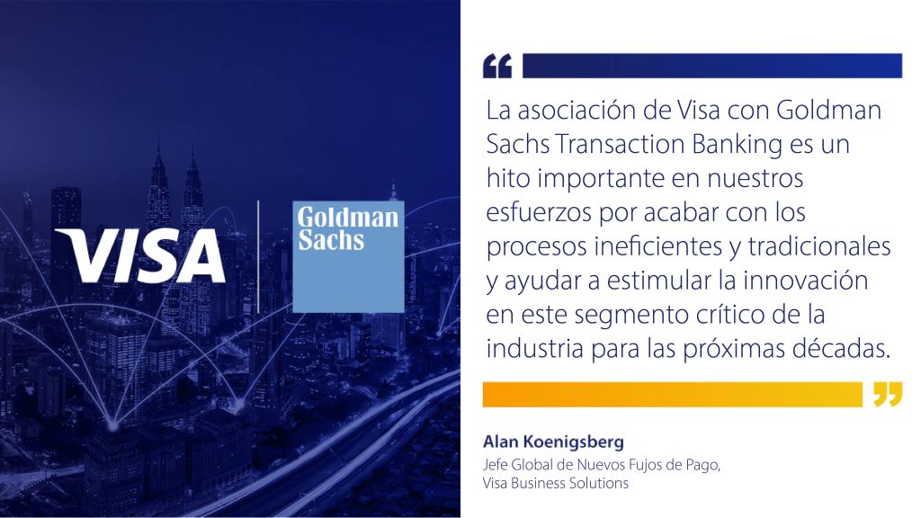 Alianza estratégica incluye la implementación de Visa B2B Connect y Visa Direct para transformar las operaciones de tesorería de los clientes de Goldman