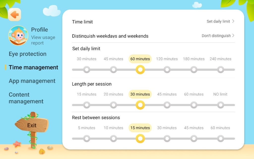 Por ejemplo, los padres pueden establecer intervalos para que su hijo pueda utilizar la tablet durante un máximo de 20 minutos después del colegio o también aplicar diferentes configuraciones para los días de la semana y el fin de semana. Los padres también pueden acceder a los registros de uso de sus hijos, lo que les permite tener un control preciso del tiempo de uso y ver las aplicaciones utilizadas en un periodo determinado. Así, la tablet aporta el equilibrio perfecto entre el estudio y el juego.