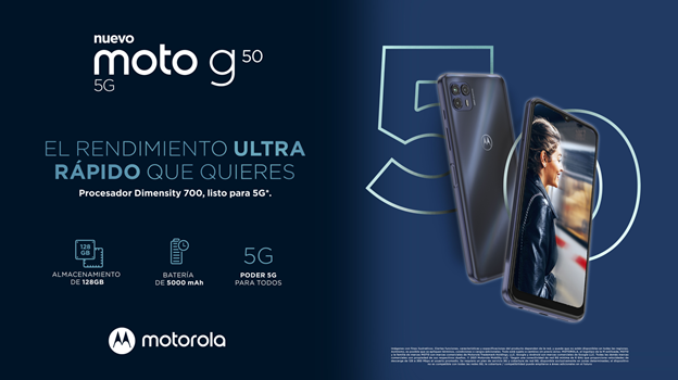 En Motorola, queremos empoderar a nuestros consumidores para que tengan la mejor experiencia posible. Hoy presentamos el moto g50 5G, que ofrece velocidad de próxima generación para los consumidores de nivel medio sin comprometer el rendimiento, la potencia y la duración de la batería. Obtendrás velocidad 5G, una pantalla espectacular que se actualiza a 90 Hz, un sistema de cámara triple de 48 MP2 que toma fotos más luminosas y nítidas con cualquier luz y una batería de larga duración.
