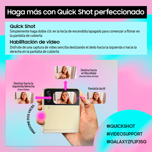 Diseñado para inspirar a los usuarios a buscar nuevas formas para capturar contenido dinámico y creativo para las redes sociales, el Galaxy Z Flip 5G trae una variedad de funcionalidades que hacen este proceso más fácil y entretenido.