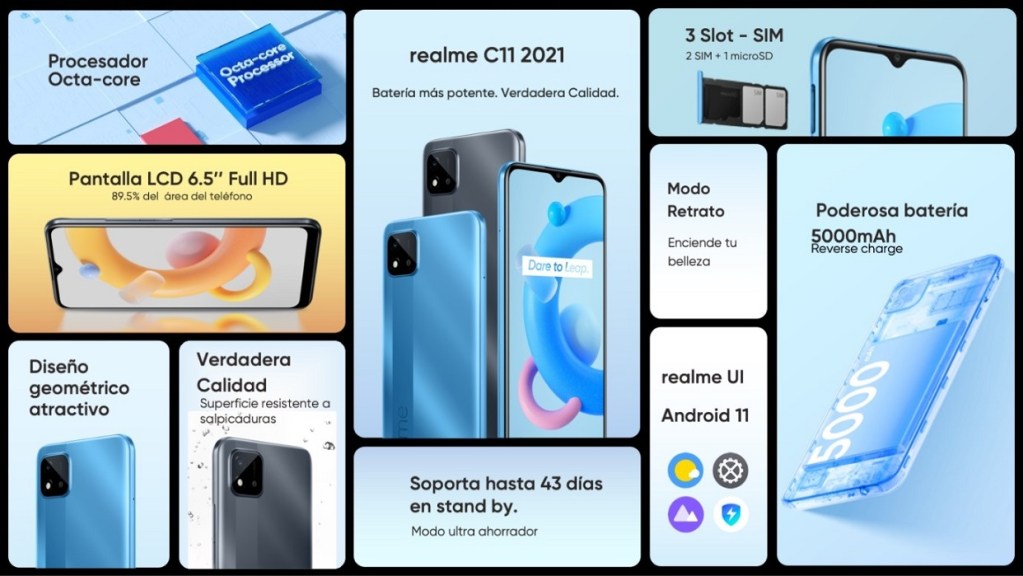 1. Batería. Desarrollado para satisfacer a usuarios que buscan un smartphone con lo necesario para comunicarse y entretenerse, el realme C11 cuenta entre sus características con una batería de 5000mAh, capaz de conservar el equipo sin recarga hasta por 43 días gracias a su modo ultra ahorrador y de permitir hasta 6 aplicaciones básicas en uso.
