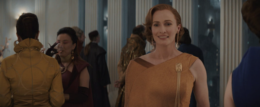 Trabajando en secreto, la senadora Mon Mothma navega cuidadosamente las peligrosas sombras de la política de Coruscant en sus esfuerzos por construir una rebelión viable. “Es una mujer atrapada en una jaula y todo el mundo la mira, y ella tiene una vida secreta extremadamente potente ya que arriesga muchísimo apoyando la rebelión”, agrega Gilroy.