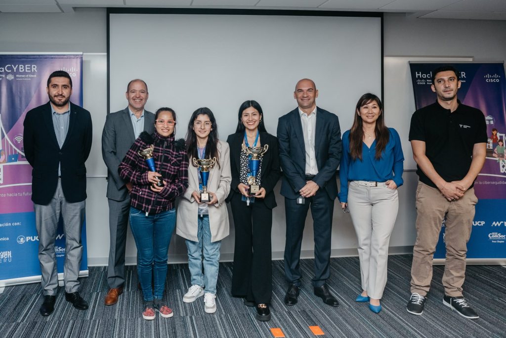 El “HackaCYBER” fue organizado por Cisco y Telefónica Tech en colaboración con la Pontificia Universidad Católica del Perú, Women in Tech, IEEE Comsoc y Merlin Data Technology – MDT y usó la plataforma “Capture the flag” de Cisco en que las participantes solucionaron diversas misiones de ciberseguridad, en busca de las banderas y del puntaje que las hizo avanzar hasta tener a las ganadoras que fueron: Johanna Fiorella Lozano Conde (primer puesto – 682 puntos), Joselyn Sheila Guinea Asturay (segundo puesto con 605 puntos) y Milay Yong Castro (tercer puesto con 604 puntos). Las tres fueron reconocidas con trofeo, medalla, certificado de reconocimiento del puesto alcanzado y una beca para que se conviertan en Instructoras Certificadas del curso CCNA Introducción a las redes de Cisco Networking Academy.