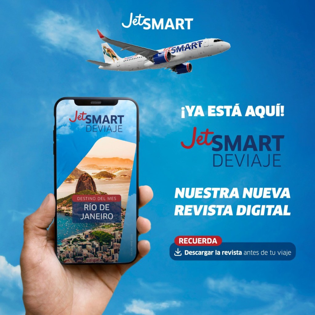 Con Río de Janeiro como destino destacado en su primera edición, JetSMART Airlines lanzó su revista digital DeViaje. Se trata de la primera alternativa de entretenimiento a bordo que tiene la compañía y que ofrece contenido relacionado a los destinos a los que actualmente vuelan, recomendaciones para viajar, información de su flota, paradas obligatorias, trivias, y también entrevistas a mamás viajeras, además de historias de tripulantes y otros contenidos de tendencia e interés para los pasajeros.