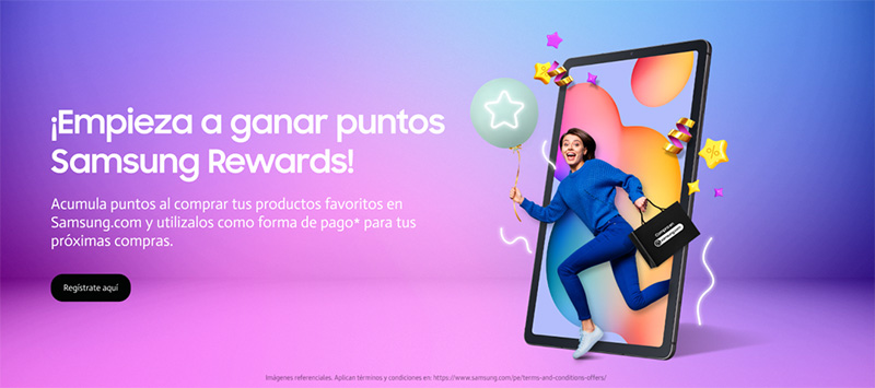 Con el objetivo de brindar una mejor experiencia al consumidor, Samsung Perú presenta Samsung Rewards. Con este nuevo programa podrás acumular puntos al comprar cualquier producto en http://www.samsung.com y usarlos como forma de pago en tus futuras compras.