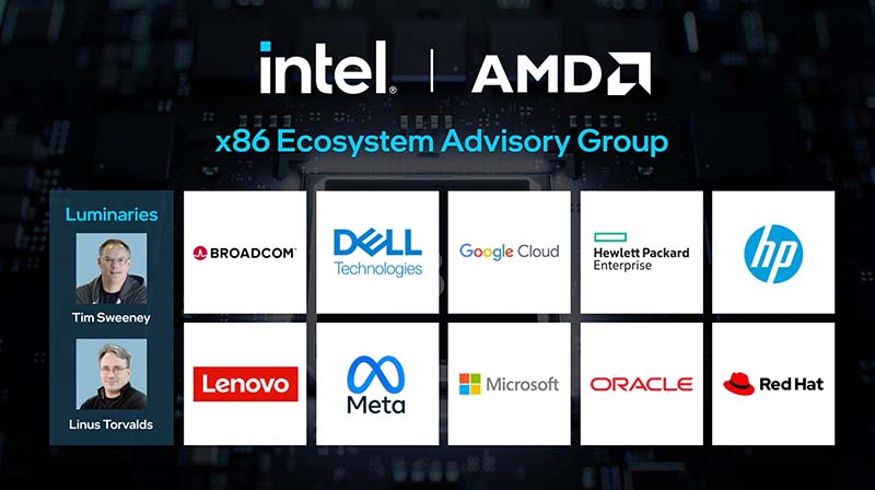 Como competidores vigorosos, Intel y AMD comparten al mismo tiempo una historia de colaboración en la industria, enfocada en avances a nivel de plataforma, la introducción de estándares y la mitigación de vulnerabilidades de seguridad dentro del ecosistema x86. Sus esfuerzos conjuntos han dado forma a tecnologías clave como PCI, PCIe y la Interfaz Avanzada de Configuración y Energía (ACPI, por sus siglas en inglés). Ambas compañías también jugaron un papel fundamental en el desarrollo de USB, un estándar de conectividad vital para todas las computadoras, independientemente del procesador. Este grupo asesor lleva esta colaboración industrial al siguiente nivel para beneficiar a todo el ecosistema de computación y ser un catalizador para la innovación de productos.