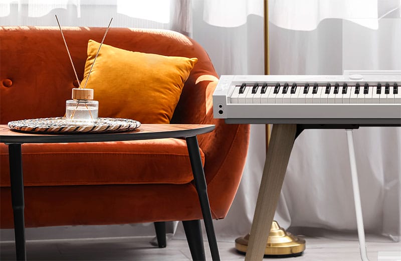 La música es un arte que se viene implementando en la decoración del hogar. Uno de los instrumentos musicales más utilizados es el piano, en especial el modelo Privia PX-S7000 de Casio. Gracias a su estética minimalista, se recomienda colocarlo en un espacio iluminado, acompañado de cuadros abstractos en la pared o una lámpara de pie elegante junto a él.